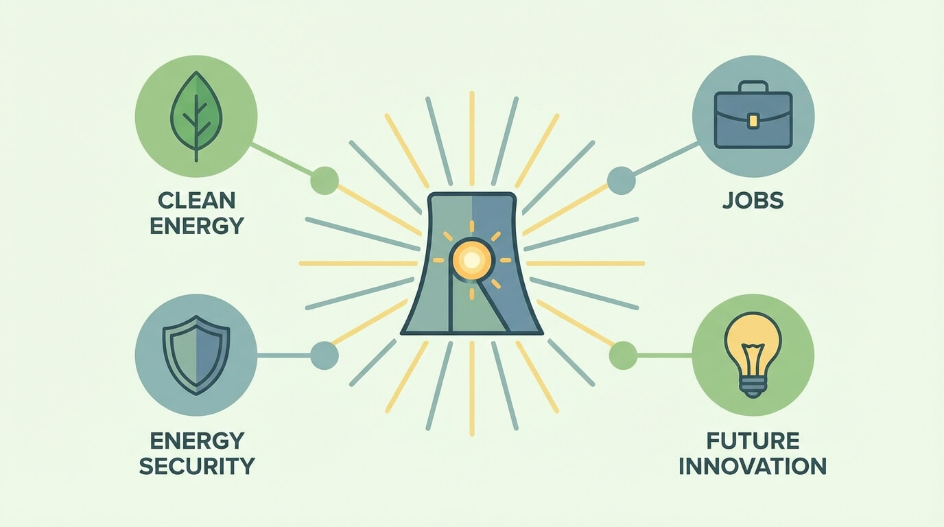 ✅ No carbon emissions - Clean, baseload power that runs 24/7 (unlike solar or wind)
