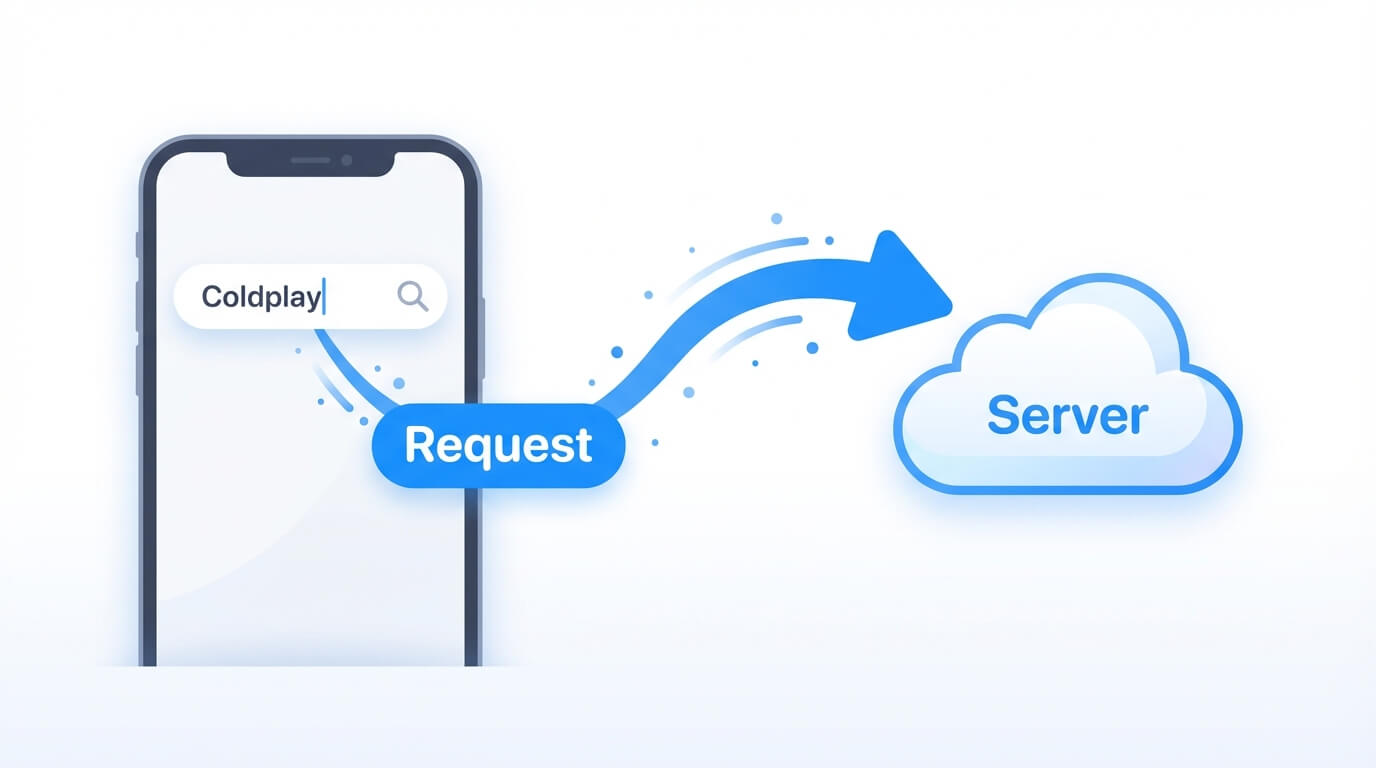 Real-life example: You open Spotify and search for "Coldplay." You just made a request. You're asking Spotify's system: "Do you have songs by Coldplay? Send them to me."